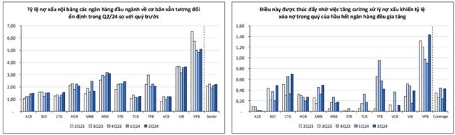 Hầu hết các ngân hàng đều thúc đẩy việc xử lý nợ xấu trong Quý 2.2024, tuy nhiên thu nhập từ thu hồi nợ xấu trong quý chưa quá tích cực, trong bối cảnh thị trường BĐS còn khó khăn.