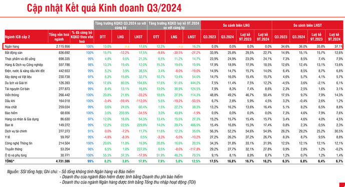 Lợi nhuận Trước thuế Q2.2024 của các ngân hàng thuộc phạm vi nghiên cứu +16,4% (+3,5% QoQ), 6T2024 +12,4% YoY: