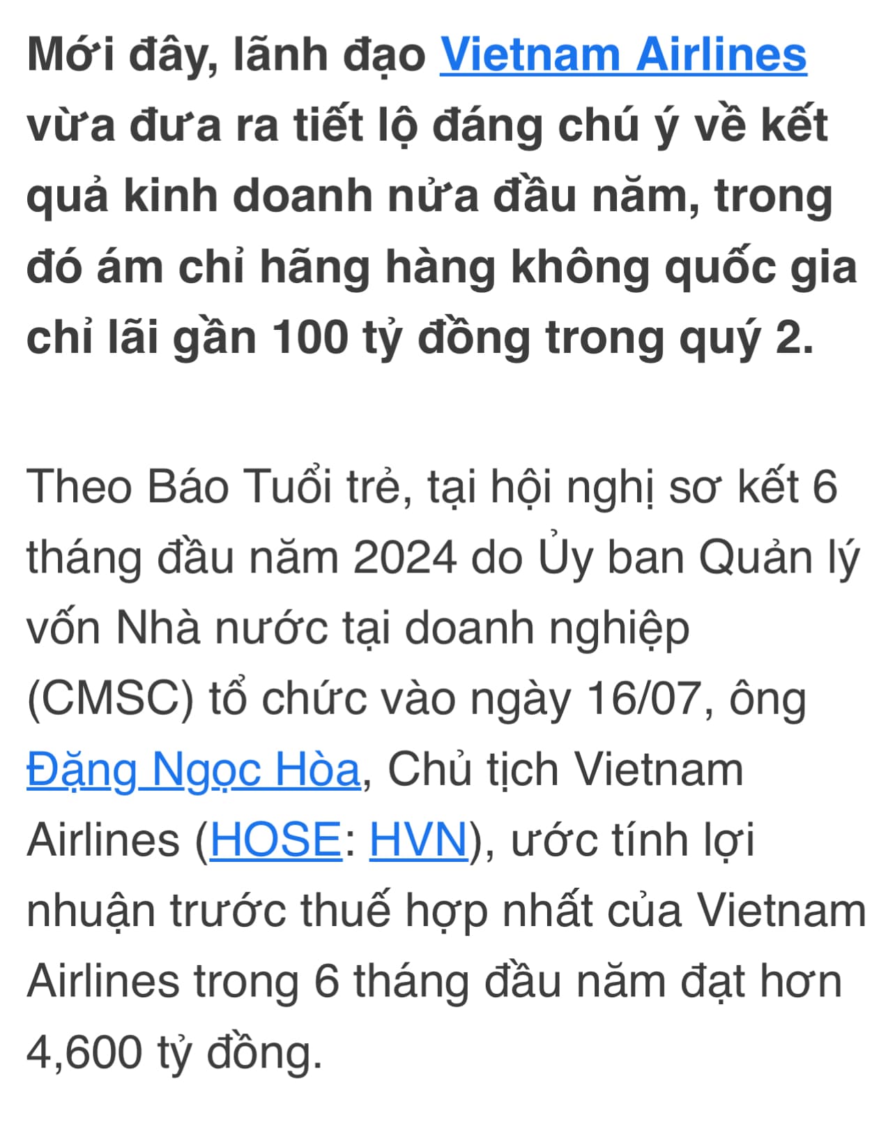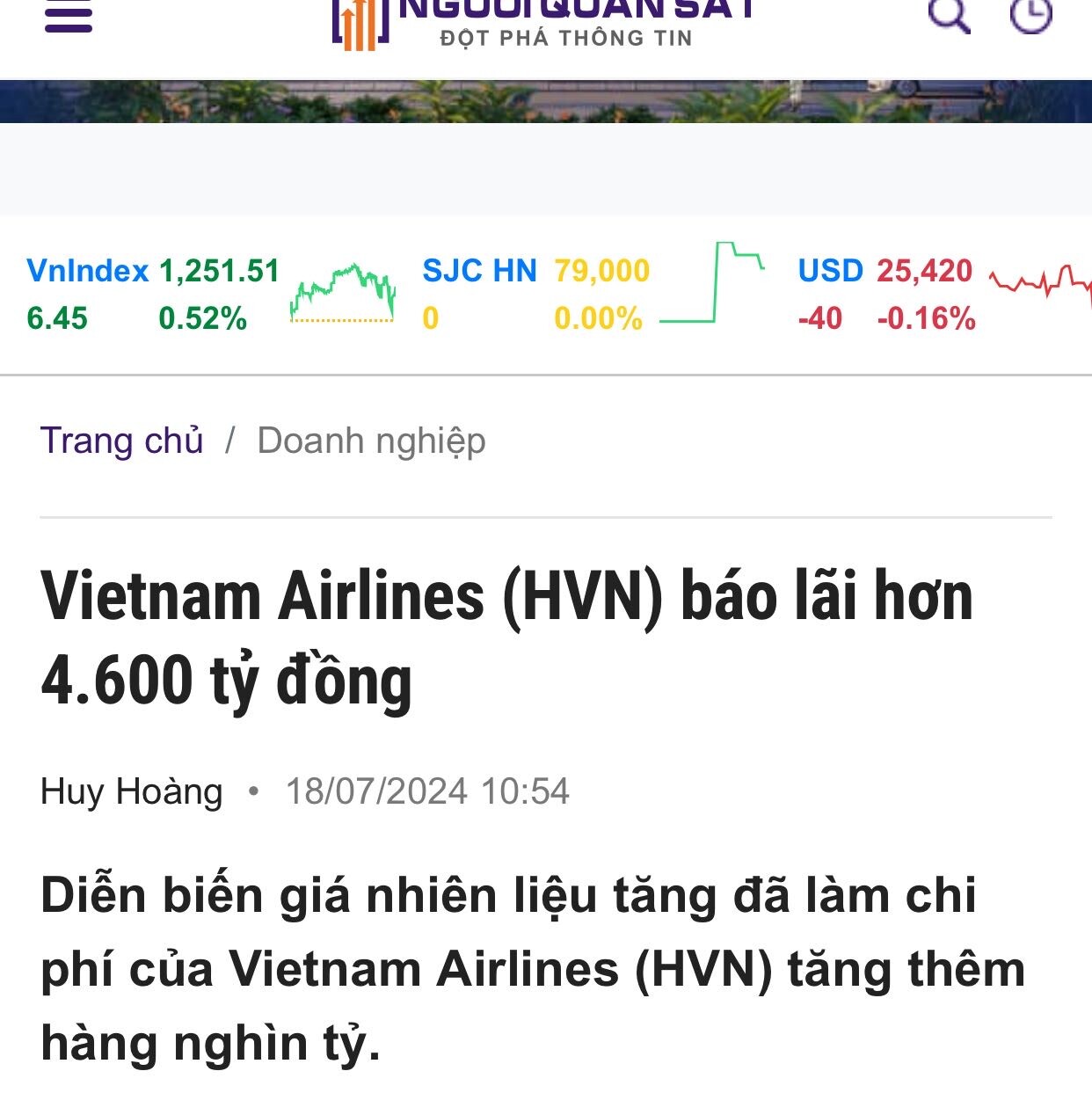 Kq là HVN lãi 5.675 tỷ 6 tháng đầu năm, vượt xa KH