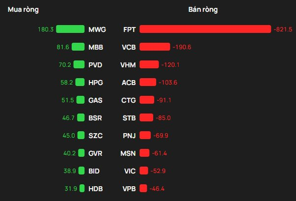 Ngược lại, FPT là cổ phiếu khối ngoại bán mạnh nhất với 821 tỷ đồng. Theo sau, các cổ phiếu VCB và VHM cũng bị “xả” 190 tỷ đồng và 120 tỷ đồng.