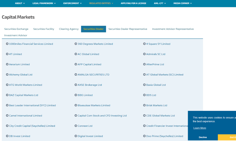 Việc kiểm tra giấy phép FSA có thể thực hiện trên trang web chính thức của Financial Services Authority Seychelles.