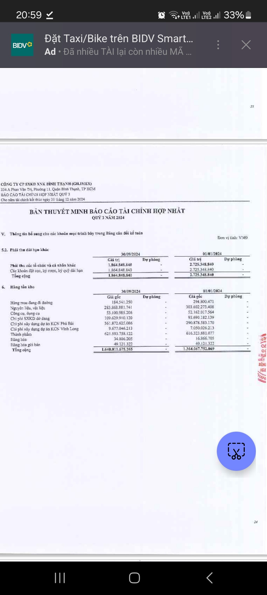 Theo bctc quý 3 thì trong mục hàng tồn kho, kcn Vĩnh Long có số dư 9,7 tỏi, tăng 2 tỏi so với đầu năm. Đây là chi phí giải phóng mặt bằng.