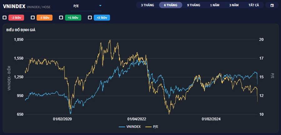 - Định giá: thị trường đang quay về mặt bằng rất thấp. Với P/B ở mức 1.45 lần – tương đương vùng đáy của các giai đoạn khủng hoảng gần nhất( Cuối năm 2022, cụ thể từ tháng 9 đến tháng 11 năm 2022 đây được xem là thời kỳ thị trường rơi vào trạng thái bán tháo hoảng loạn do ảnh hưởng của khủng hoảng trái phiếu doanh nghiệp, đặc biệt là sau sự kiện Tân Hoàng Minh và Vạn Thịnh Phát)