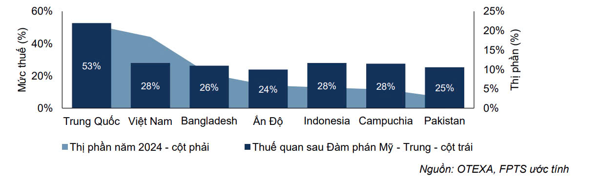 Nói về câu chuyện thuế quan thì đối với ngành dệt may, Mức thuế trung bình của Việt Nam vẫn thấp hơn ~25% so với Trung Quốc sau hạ thuế.