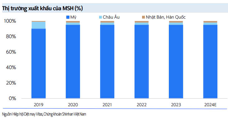 Với MSH, tỷ trọng doanh thu xuất khẩu sang Mỹ chiếm 80%, và theo công ty, trong quý 2/2025, các đơn hàng với khách hàng tại Mỹ không bị hủy và được đối tác yêu cầu đẩy nhanh tiến độ giao tận dụng 90 ngày hoãn thuế. Bên cạnh đó, việc Trung Quốc chịu mức thuế cao đã tạo điều kiện để các doanh nghiệp này nhận thêm một số đơn hàng nhỏ được chuyển dịch khỏi Trung Quốc. Tuy nhiên vẫn có 1 yếu tố cần lưu ý đó là biên lợi nhuận có thể giảm nhẹ do doanh nghiệp chia sẻ chi phí phát sinh từ thuế quan.