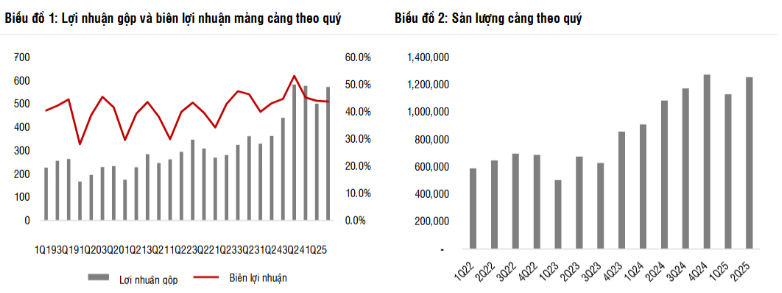 Tuy nhiên ban lãnh đạo kì vọng Q4/25 sản lượng thông quan sẽ ở mức cao nhờ mùa cao điểm. Chúng tôi cũng cho rằng nửa cuối năm mức tăng trưởng cũng yếu hơn bởi: