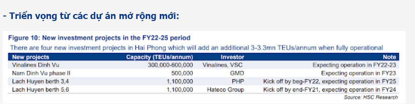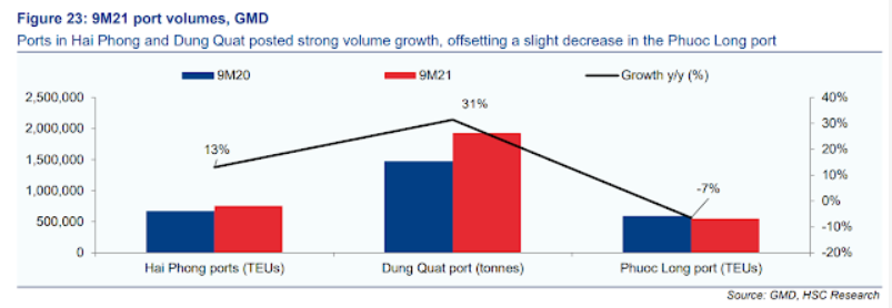 Đợt dịch bùng phát lần 4 ảnh hưởng nghiêm trọng ở các tỉnh thành phía Nam, tuy nhiên, tác động tới các cảng ở khu vực phía Bắc và Hải Phòng nhìn chung là không đáng kể. Trong quý 3/2021, lợi nhuận từ các cty liên doanh liên kết tăng 68 tỷ đồng nhờ GML và GSH. Giá cước vận tải tăng đột biến giúp GSH ghi nhận lợi nhuận hơn 12 tỷ đồng, trong khi so với quý 3/2020, GSH lỗ 6 tỷ đồng. Trong năm cũng ghi nhận mức lợi nhuận từ SCSC khoảng 141 tỷ đồng.