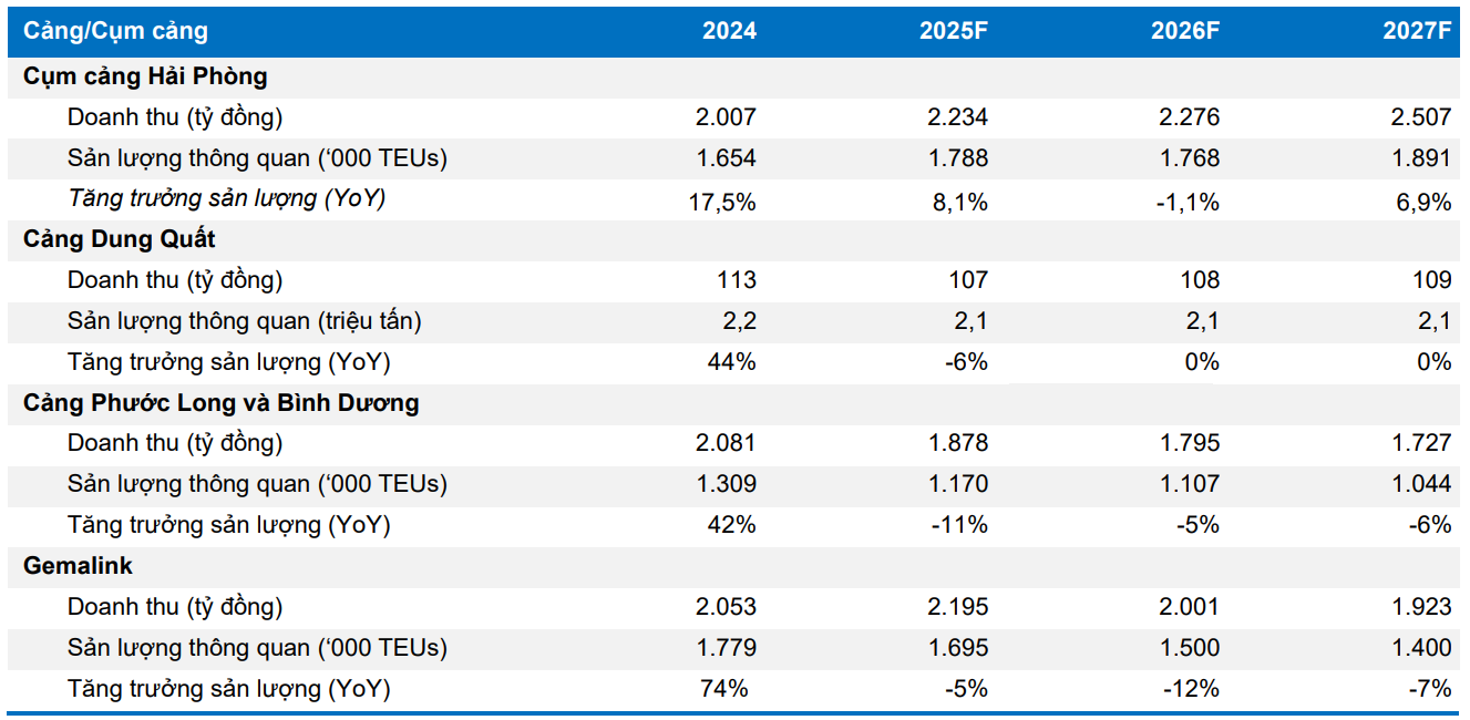 Chi tiết giả định sản lượng thông quan các cảng giai đoạn 2025-2026