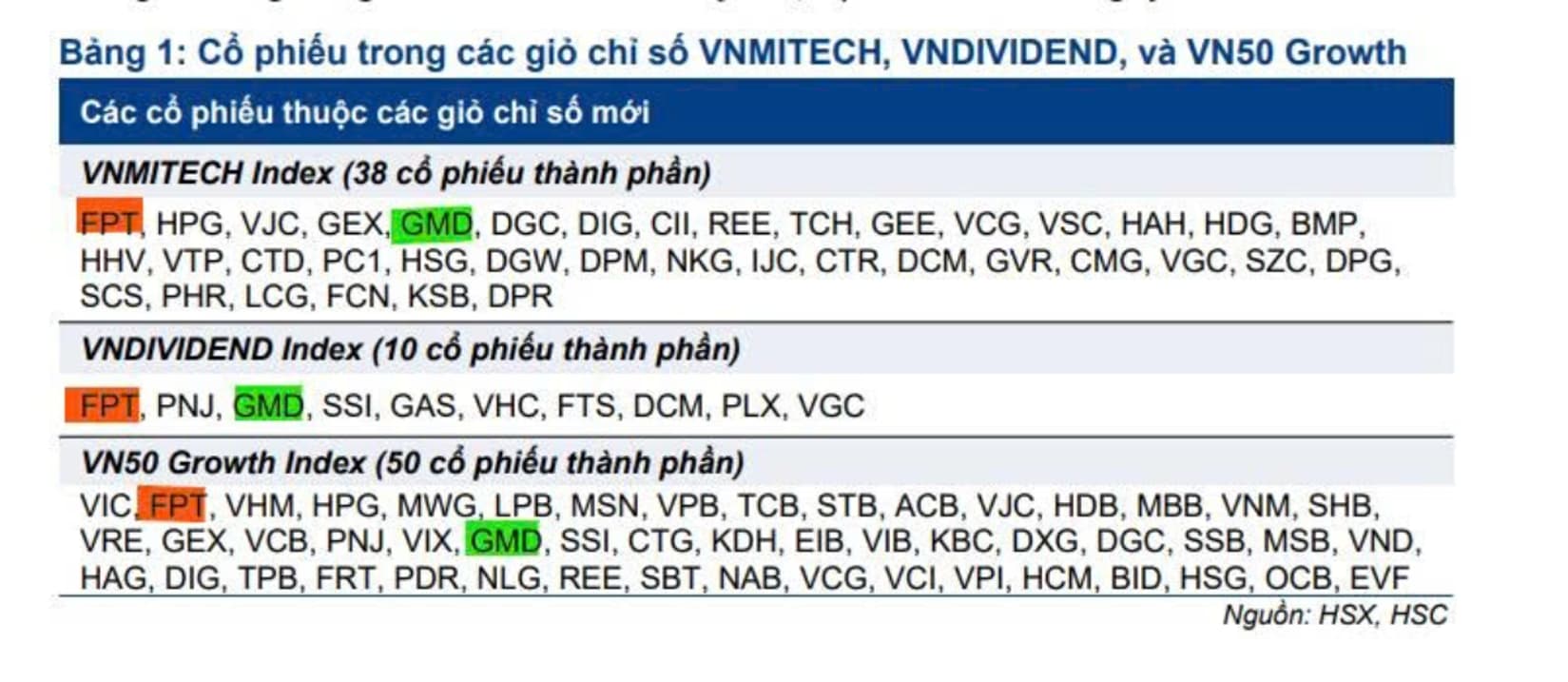 - GMD là 1 trong 2 cổ phiếu sẽ có mặt trong cả 3 rổ chỉ số mới của HOSE là VNMITECH, VNDIVIDEND, VN50 Growth. Qua đó tạo thêm sự hấp dẫn của cổ phiếu chủ yếu với dòng tiền mới từ khối ngoại. (Hình 9)
