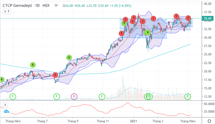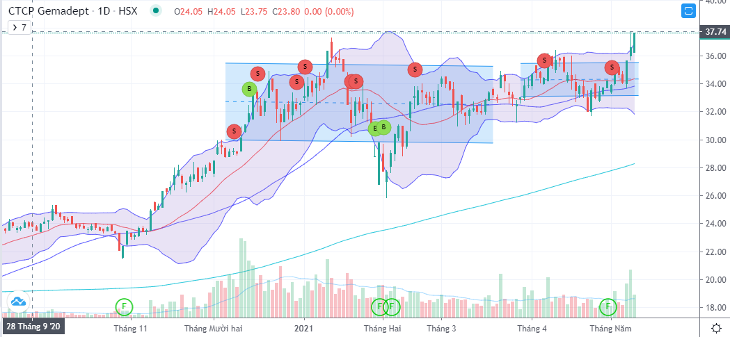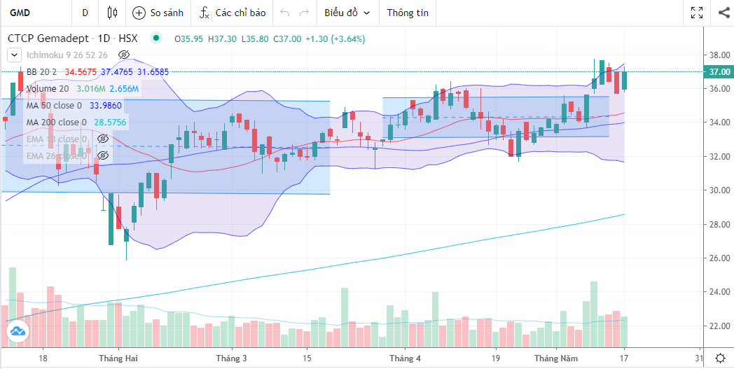 Để phản ánh triển vọng tích cực của cảng Nam Đình Vũ và GML, em kỳ vọng giá mục tiêu thêm 28% lên 45.600 đồng. Mặc dù lợi nhuận chưa khả quan trong ngắn hạn của GML có thể gây áp lực lên tăng trưởng lợi nhuận của GMD và giá cổ phiếu. Về Kỹ thuật GMD đang trong quá trình hình thành môn hình VCP, phiên ngày 10/05 có tín hiệu tích cực điểm Pocket Pivot kèm volume lớn. Quan điểm của em đây sẽ là cơ hội tốt để MUA cổ phiếu với tổng mức sinh lời kỳ vọng là 30%.