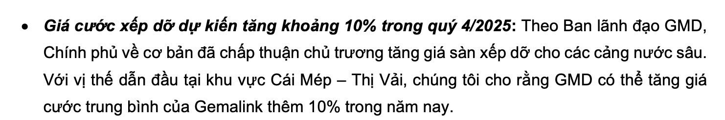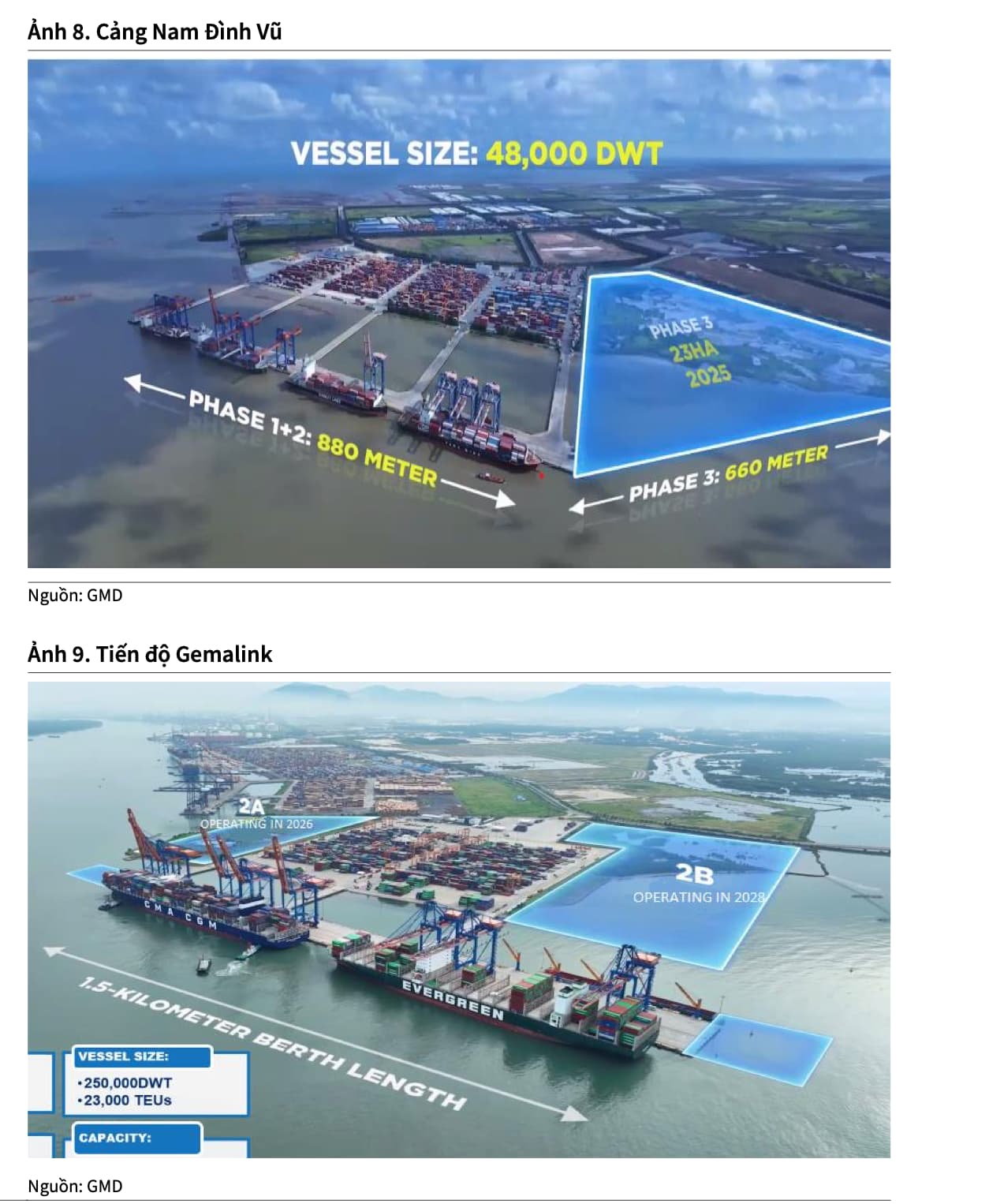 GĐ3 đang tiến hành thi công với tổng vốn đầu tư khoảng 2,500 tỷ VND, nâng tổng diện tích cảng lên 65ha, tổng chiều dài bến 1.5km, tổng công suất đạt 2 triệu Teu. Nam Đình Vũ 3 dự kiến hoàn thành trong 4Q2025. GMD dự kiến GĐ3 có thể đạt 40% công suất trong 2026, với lợi nhuận từ hàng OOG 2025/2026 đạt ít nhất 100/200 tỷ VND.