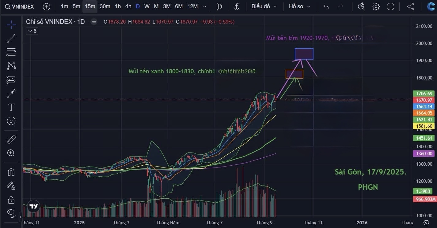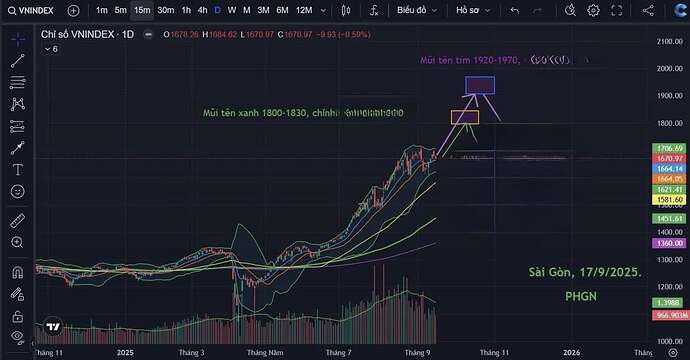 Chào mọi người, trên quan điểm phác họa Vnindex xuyên suốt từ 1/7/2025 tới giờ thì quan điểm cá nhân rất kì vọng vào khả năng VNINDEX sẽ chinh phục 1700 điểm ngay trong tháng 10/2025 này ( kết thúc tháng 9, VNINDEX đang đóng cửa ở mức 1661.7 điểm).