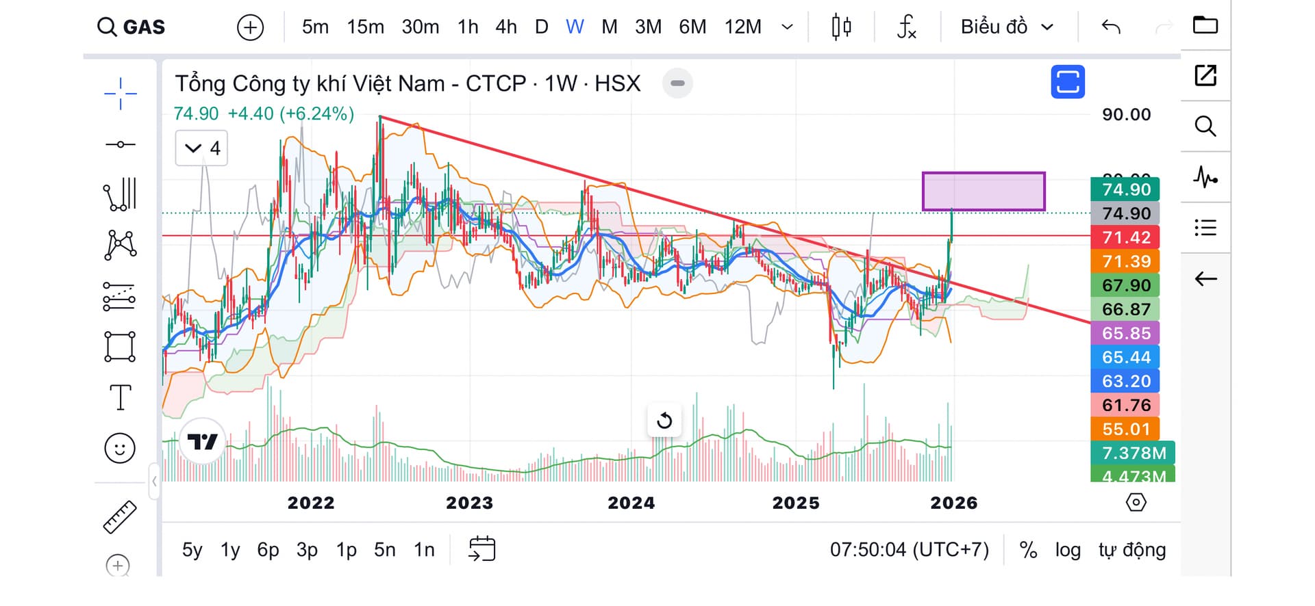 GAS nói riêng và nhóm dầu khí nói chung, tháng cuối năm kéo thốc và ở GAS đã kéo nhanh tiến về khu vực mục tiêu ngắn quanh 75-80, nên với nhóm này anh chị có thể chốt ngắn bớt 1 phần ở phiên hôm nay.