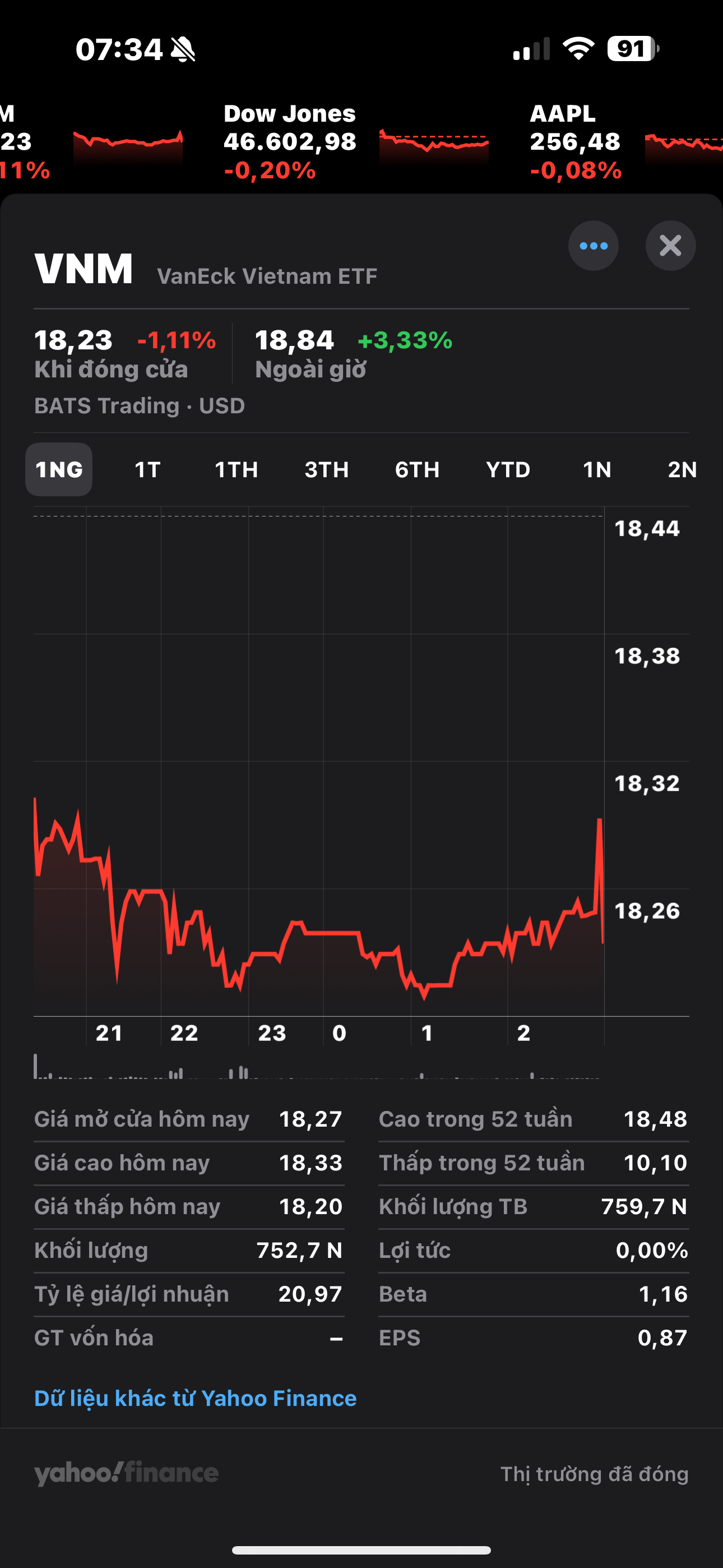 VNM ETF quỹ mô phỏng VN30, giao dịch trên thị trường Mỹ, trong phiên đỏ nhưng hết giờ giao dịch, hiệu ứng tin tức từ kết quả đánh giá FTSE đã tăng 3.33% ( giao dịch ngoài giờ).” @người theo dõi @fan cứng