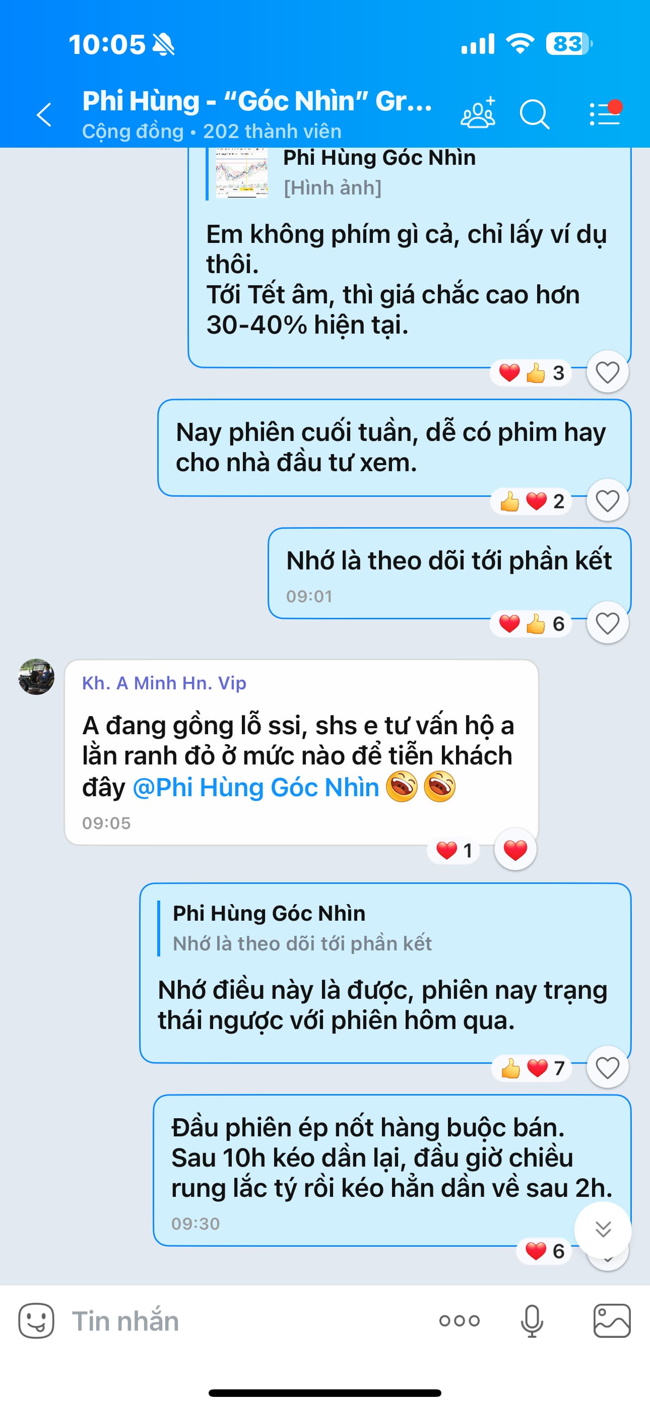 “Mọi người có thể để ý, nhóm cổ phiếu trụ giữ vai trò điều tiết VNI, nên khi VNIDEX chỉnh kĩ thuật thì thấy nhóm vốn hoán lớn có áp lực. Còn lại nhóm chứng khoán, đầu tư công vẫn cứng dù VNI rung lắc mạnh Nhóm chứng khoán đang phân hoá chút nhưng cũng loanh quanh tham chiếu, chờ tăng hết. Tuần này khả năng là tuần bùng nổ nhóm chứng khoán, trước đó em kì vọng điểm nổ nhóm này diễn ra ở tuần trước hoặc tuần này!”