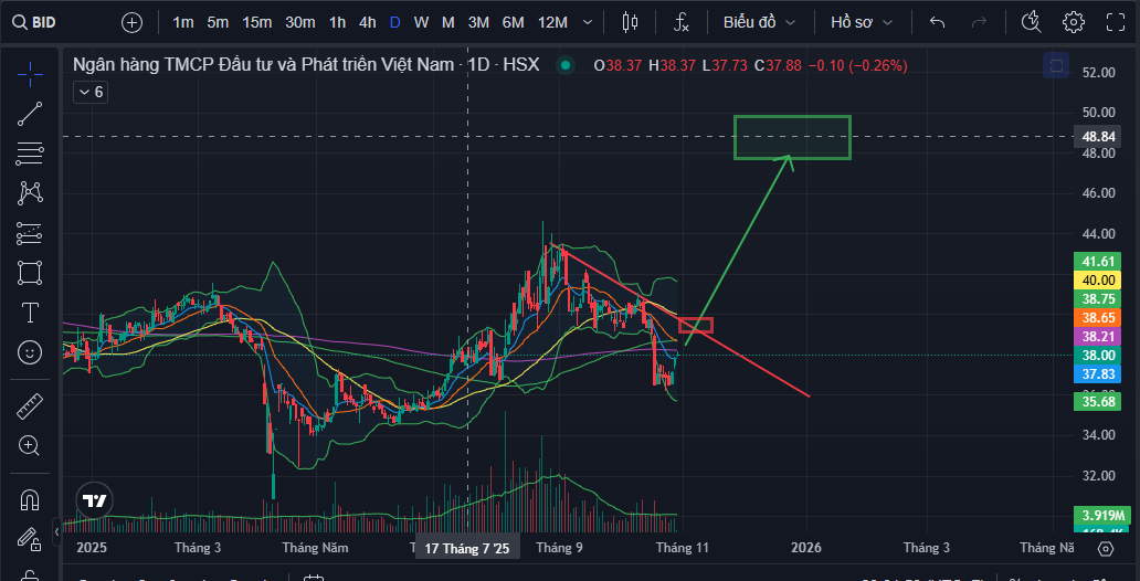 BID nhịp này vào sóng tăng chủ lực, vượt trend chỉnh ngắn đỏ sẽ confirm, xung lực hiện tại cũng như vai trò dẫn sóng của bank đang diễn ra thì BID gần như sẽ phá trend này nhanh