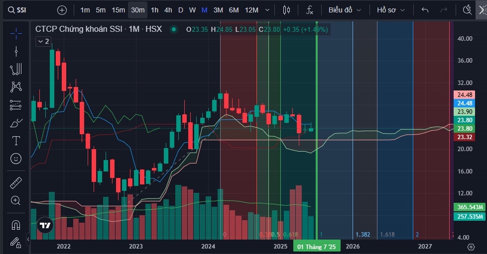 Ví dụ SSI, lấy sếu đầu đàn ra đi ( chart bên dưới)