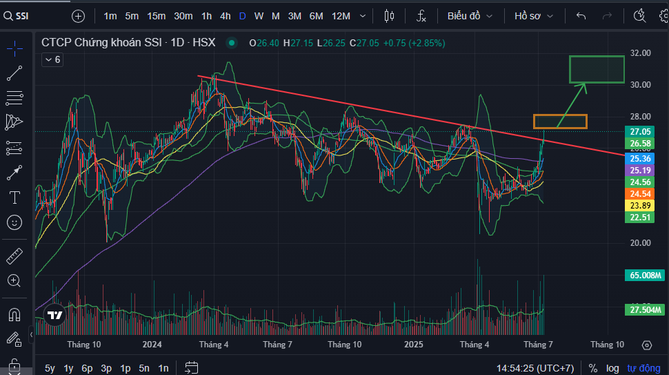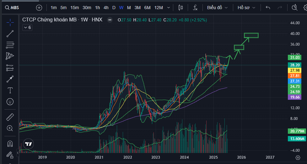 MBS thuộc top chậm, từ tốn trong nhóm chứng khoán, đang test cản quan trọng quanh 28-28.5, chỉ cần xuất hiện phiên kéo vượt hẳn thì tiến về địch lịch sử, và chặng đường tăng giá lúc sau sẽ mượt hơn, cũng sắp diễn ra rồi.