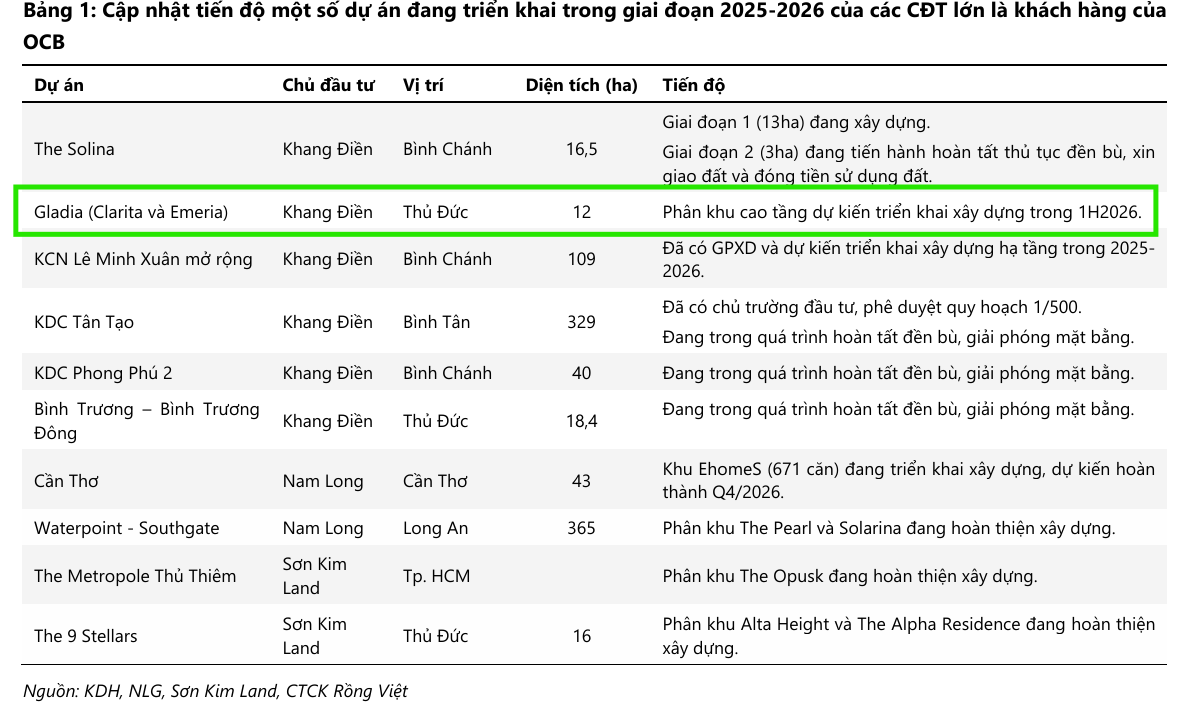 - Ví dụ điển hình: Bài báo có đề cập đến các dự án như Gem Riverside (Đất Xanh), The Global City (Masterise Homes), hay một số dự án của Novaland. Đây đều là những “đại công trường” đang khát vốn để hoàn thiện và bàn giao cho khách hàng. Nhu cầu này tạo ra một “miếng bánh” tín dụng khổng lồ cho ngành ngân hàng.