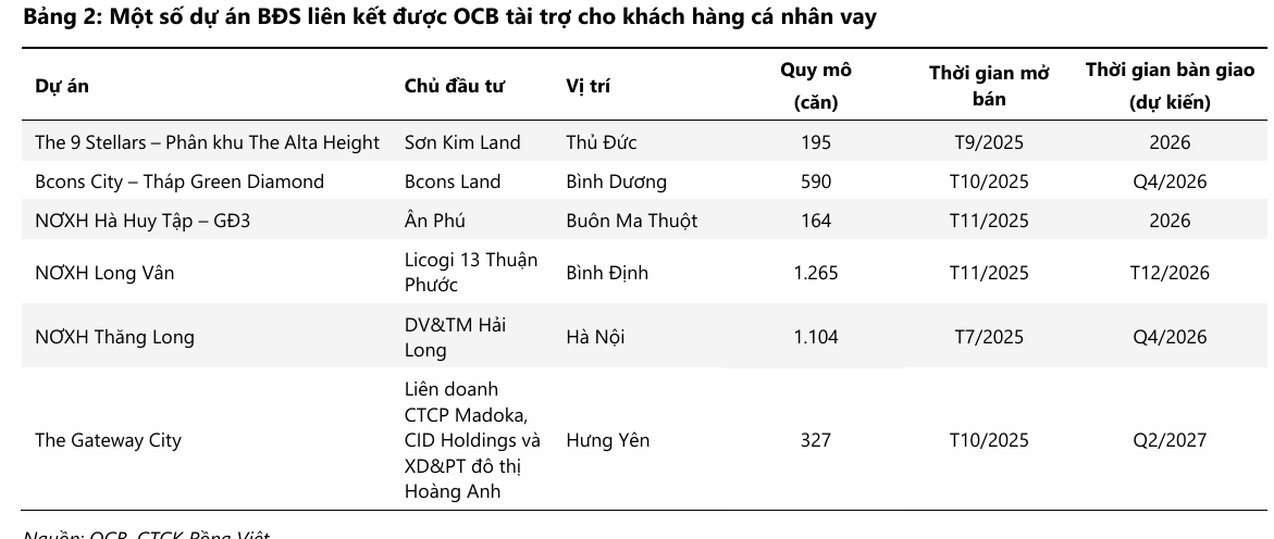 Diễn biến thị trường BĐS: Theo dõi sát sao tốc độ bán hàng, giá cả và tính thanh khoản của các dự án lớn mà OCB đang tài trợ. Đây là chỉ báo sớm nhất cho thấy sức khỏe của các khoản vay này.