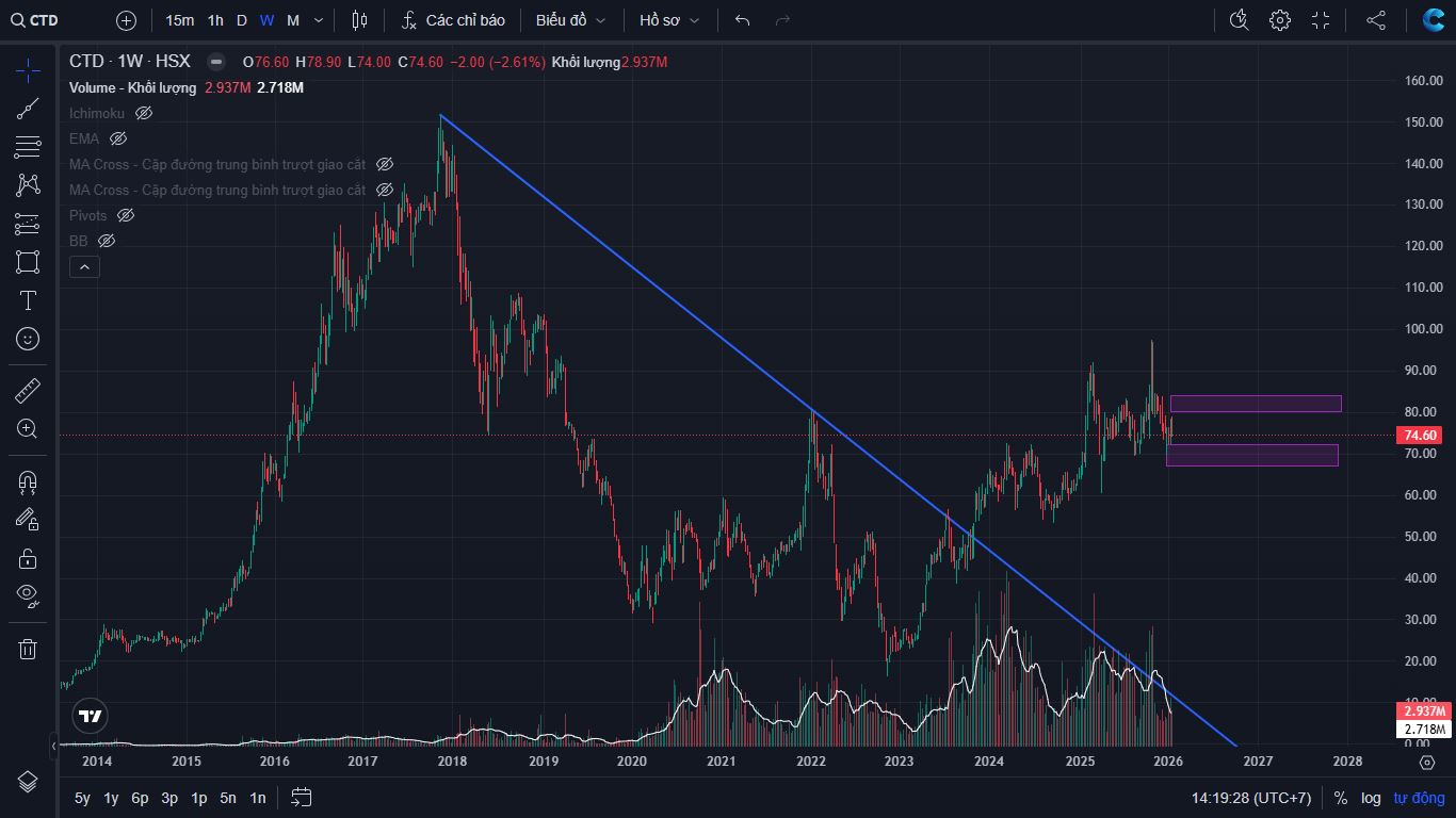 Góc nhìn phân tích kỹ thuật cổ phiếu ngành Xây dựng CTD (HoSE)
