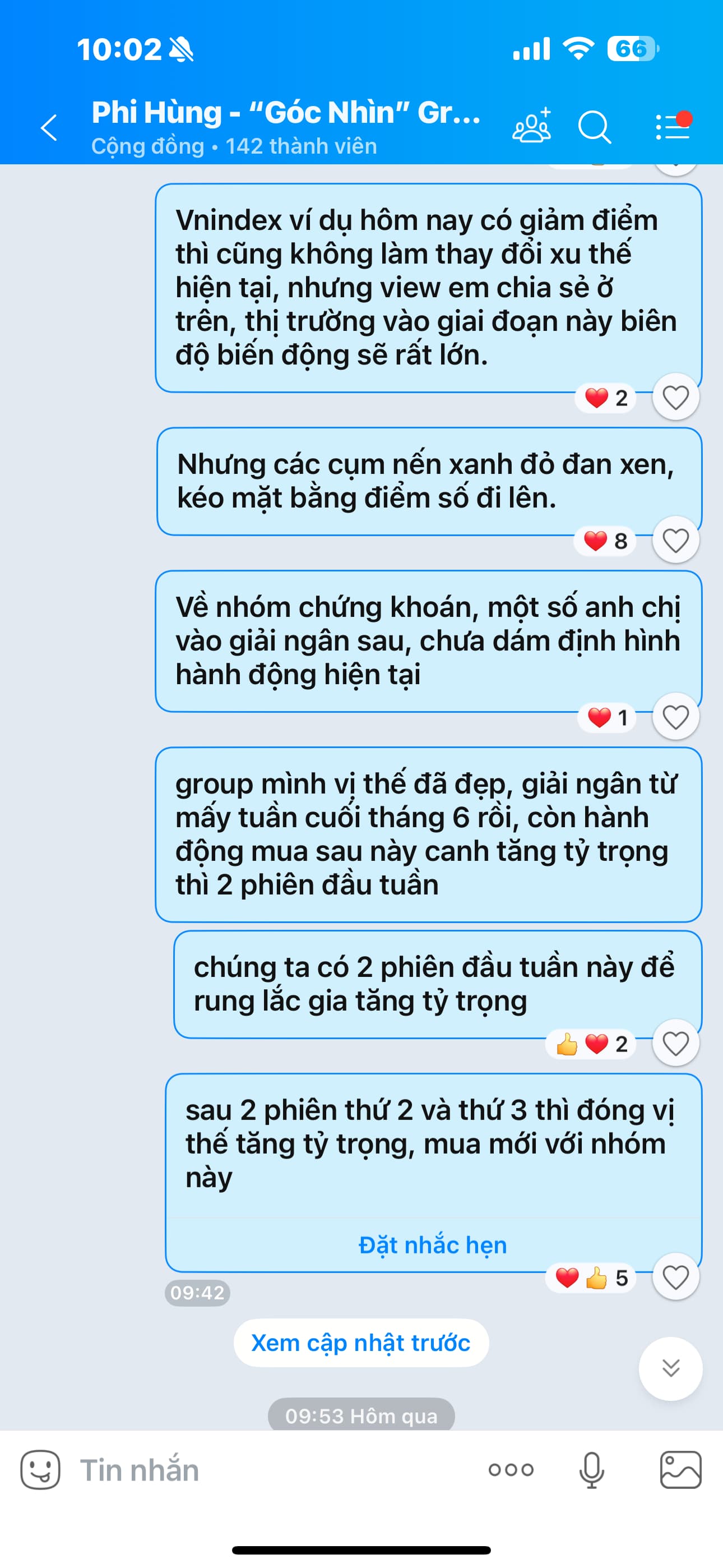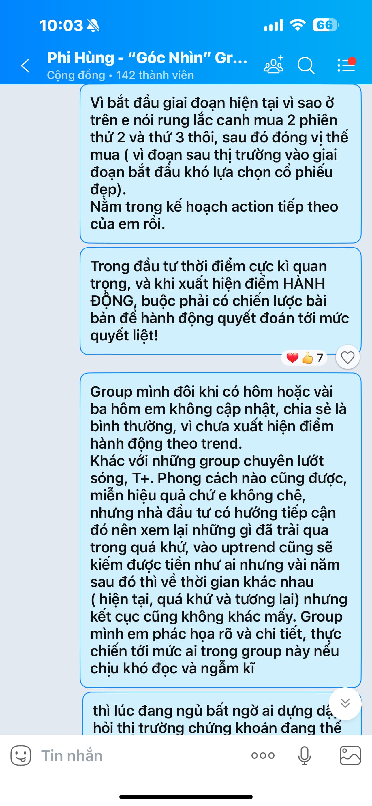 “Em dặn lại tất cả anh chị, Giữ Cái Đầu Lạnh! Bám kĩ nhịp view, Giữ vị thế Hold cho chạy Lãi và đợi điểm ACTION của em nhé! Thời điểm cực kì quan trọng, không phải thị trường lúc nào mua thêm cũng được. Thời điểm này nên né tư duy, chốt cổ phiếu tăng mạnh, đi kiếm cổ phiếu chưa tăng Ví dụ qua nhóm dầu khí vì thấy chưa tăng, SAI HOÀN TOÀN. Mai mốt rảnh em chia sẻ chút quan điểm về nhóm dầu khí Xác suất có thể có kiểu nước chảy chỗ trũng, tuy vậy xu thế lớn dầu khí đang xấu.”.