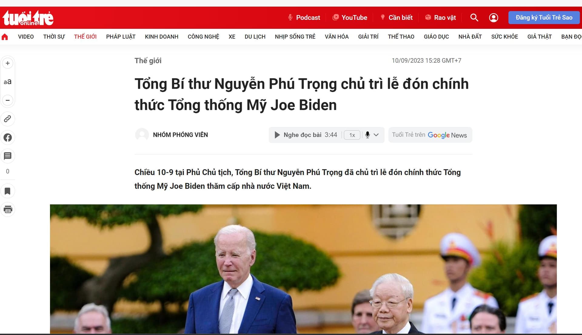 - Tổng thống Biden đến thăm chính thức từ lời mời của Tổng bí thư Nguyễn Phú Trọng ngày 10-11/09
