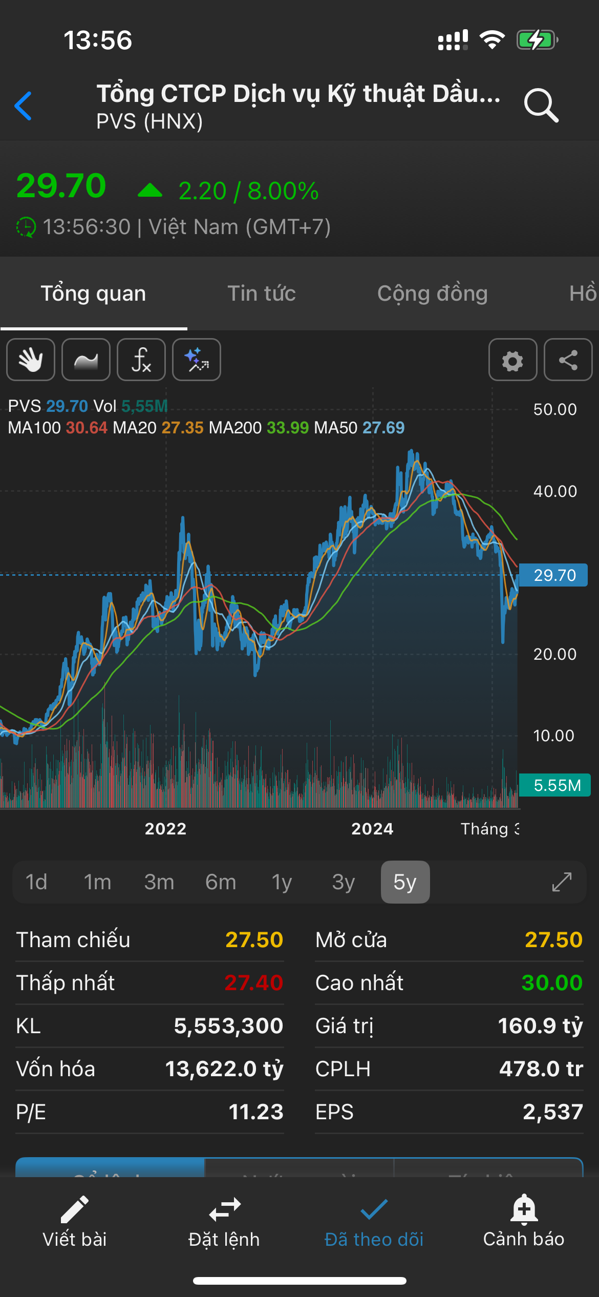 Anh kẹt nhiều thứ quá, mà PVS hôm nay các anh mua dữ dội luôn, chúc mừng các anh