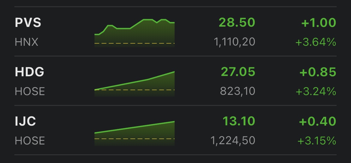 O Mon 4 có 2 ông thầu, em mua cả 2 giữ (ôm PVS vì giá cũng rẻ quá) giờ cả 2 anh đều lên xong pick thêm HDG nữa, nay TV2 tím thì chắc thị trường biết tin rồi đấy