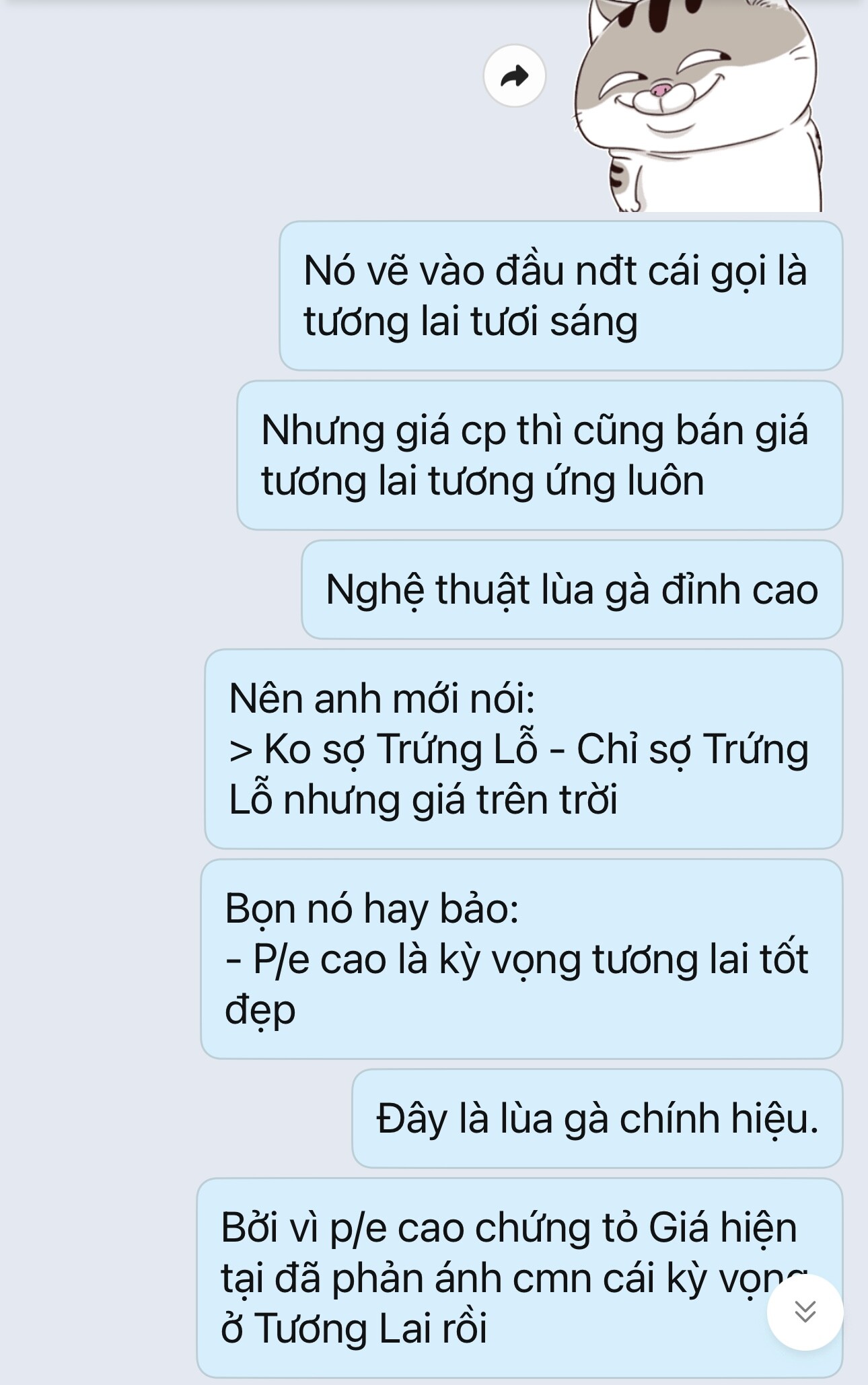 Mua Trứng vùng đáy, bạn vẫn có thể lỗ nhưng chỉ là tạm thời <=> Mua Trứng vùng đỉnh bạn có thể vĩnh viễn không về bờ đc.