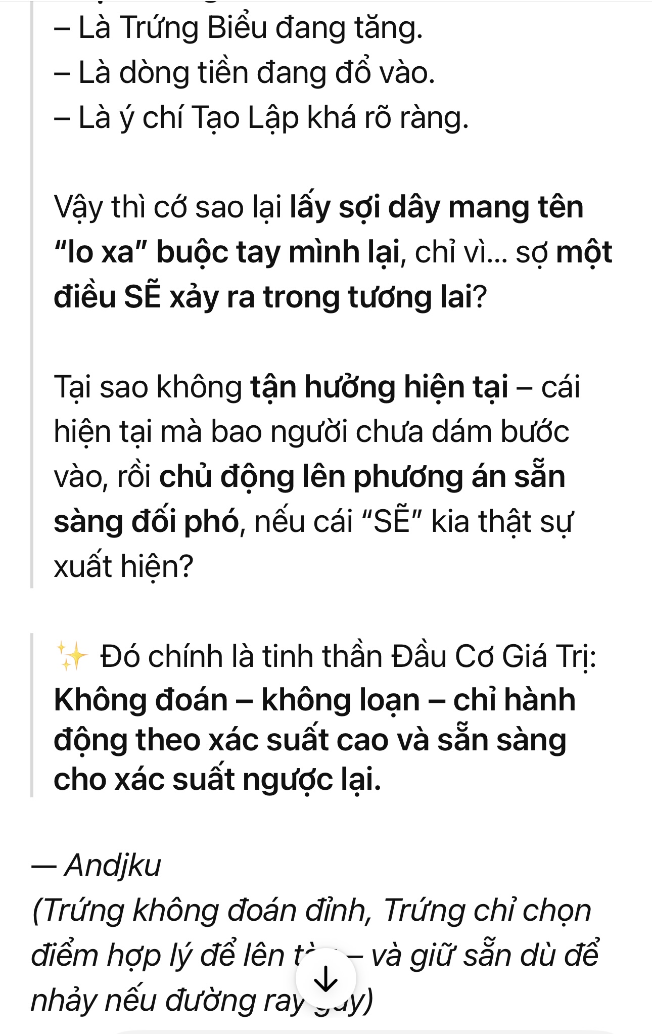 Thực tế là trứng biểu đang tăng, dòng tiền đang đổ vào, ý chí tạo lập khá rõ ràng … vậy cớ sao lại lấy dây buộc mình vì e sợ điều SẼ xảy ra?