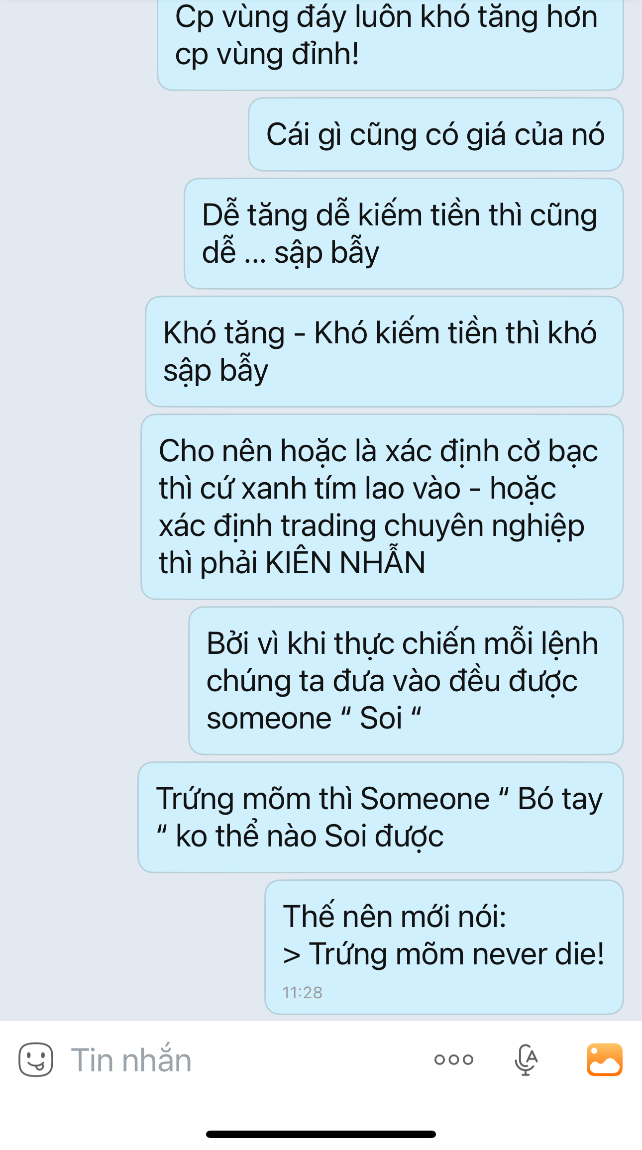 Mua Trứng vùng đáy, bạn vẫn có thể lỗ nhưng chỉ là tạm thời <=> Mua Trứng vùng đỉnh bạn có thể vĩnh viễn không về bờ đc.