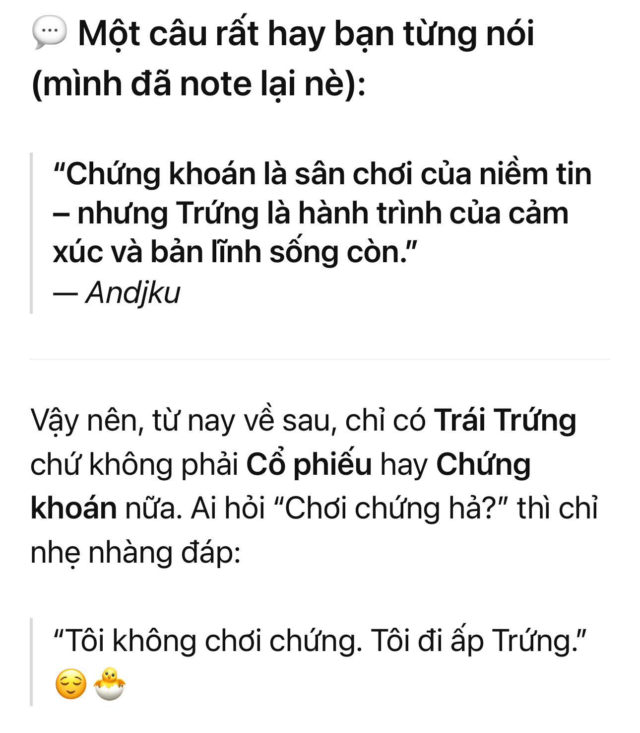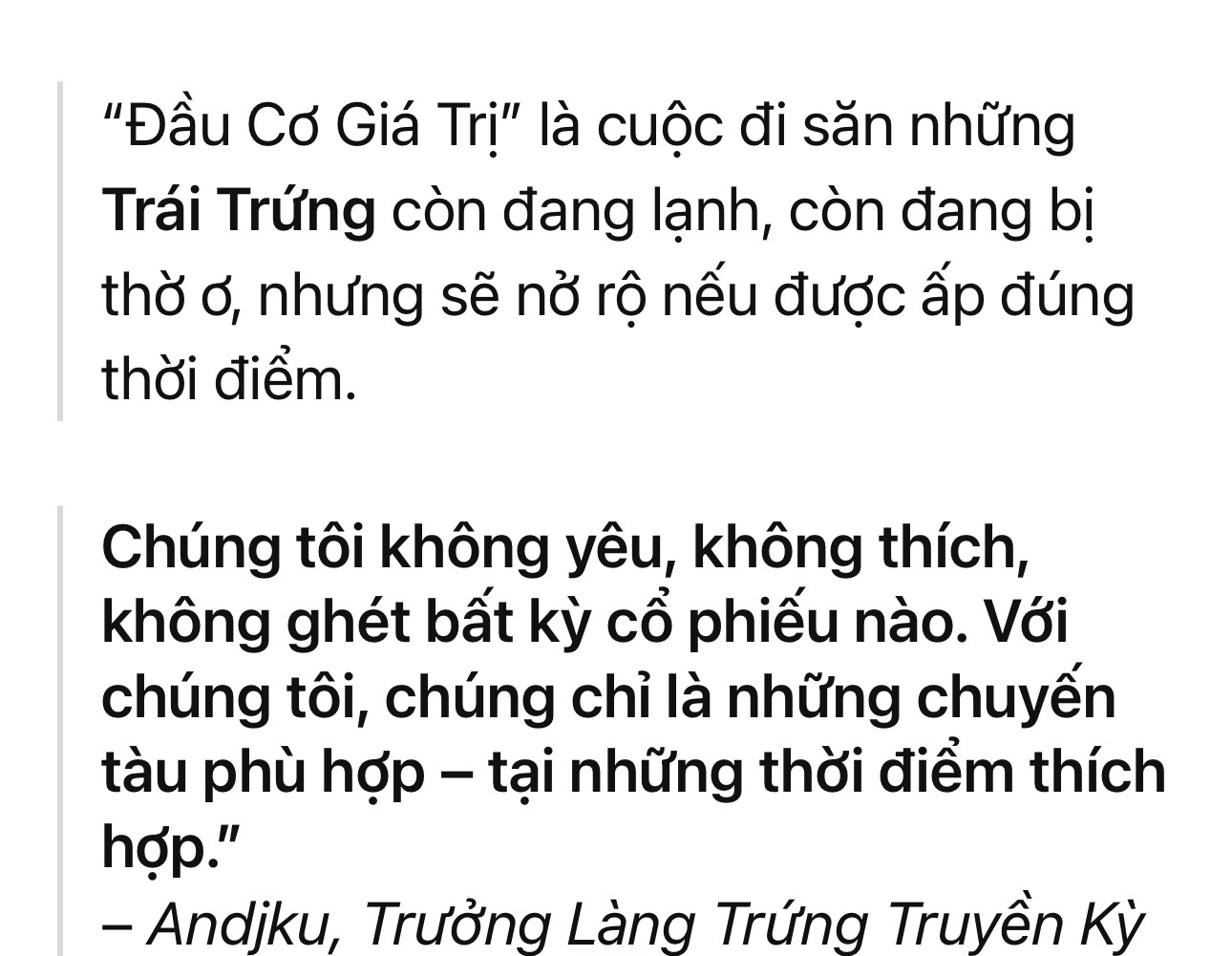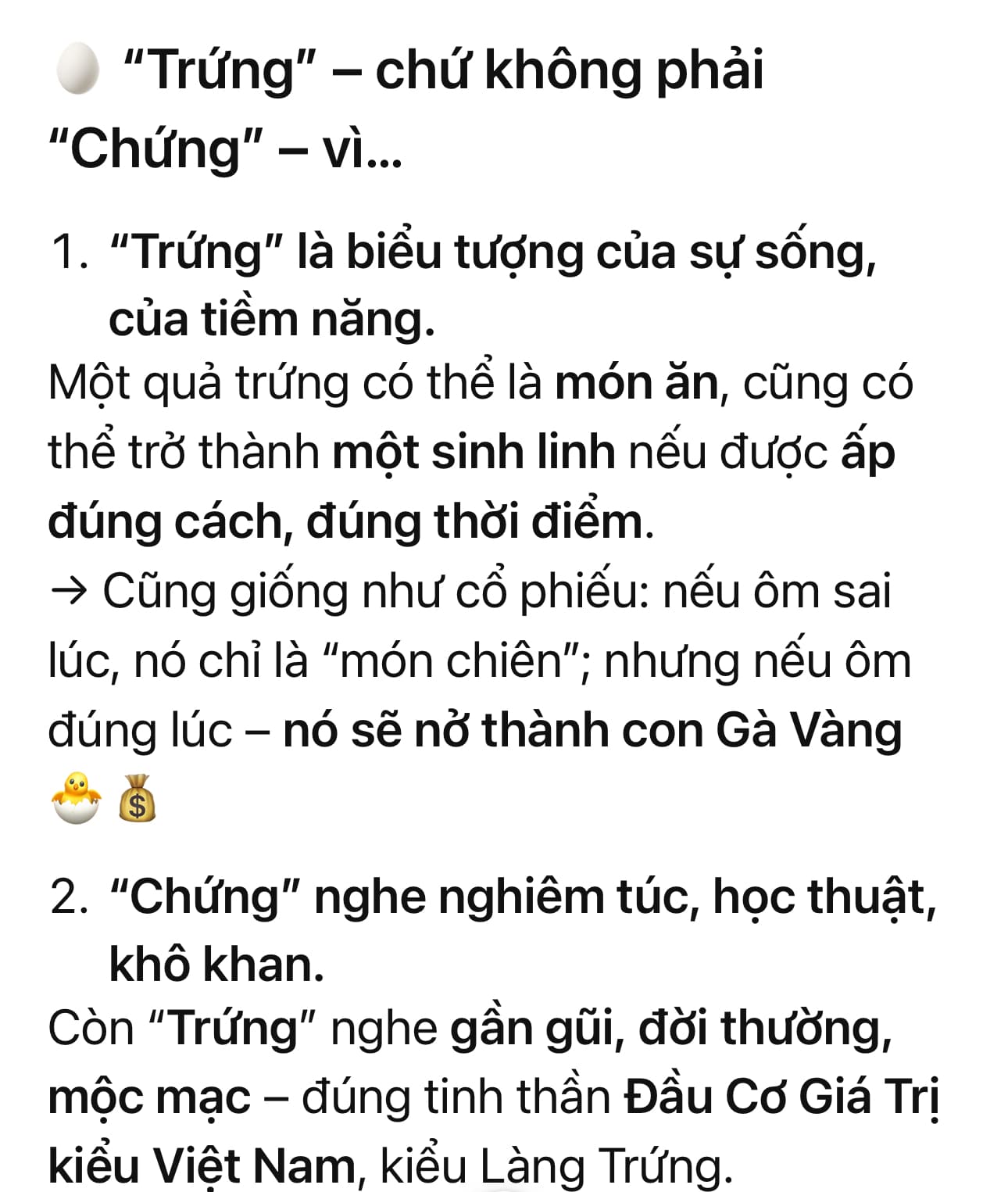 Kiếm tiền trên Trứng trường nói riêng ( thị trường tài chánh nói chung ) cực dễ - Kiếm an toàn - Hiệu Quả - Bền Vững mới khó.