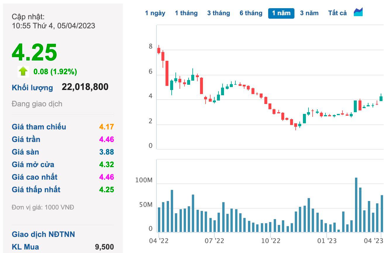 Phiên giao dịch sáng nay ngày 5/4/2023, bất chấp thị trường chung còn lình xình, mã HQC của Tập đoàn Hoàng Quân bật tăng mạnh, thanh khoản đột biến với hơn 22 triệu cổ phiếu.