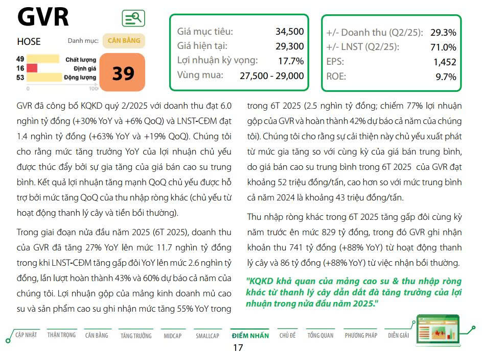 Chúng tôi tiếp tục khuyến nghị PHÙ HỢP THỊ TRƯỜNG đối với Tập đoàn Công nghiệp Cao su Việt Nam (GVR) và điều chỉnh giá mục tiêu lên 34.600 đồng/cổ phiếu, tăng 16% so với trước.