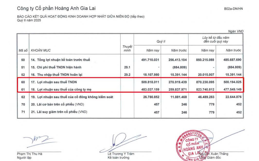HAG đặt kế hoạch 2025 với doanh thu đạt 5.514 tỷ đồng và LNST 1.114 tỷ đồng. KQKD 6 tháng đầu năm 2025, Công ty cho biết đã ghi nhận mức lợi nhuận đạt hơn 60% so với kế hoạch năm 2025 đã được ĐHĐCĐ thường niên thông qua ngày 6/6/2025.