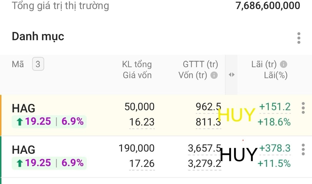 Thanh khoản của HAG cũng leo lên mức đột biến, vượt 38,2 triệu cổ phiếu, cao hơn hơn 4,6 lần so với phiên liền trước cả về khối lượng lẫn giá trị giao dịch. Riêng lượng khớp tại giá trần đã đạt hơn 16,6 triệu cổ phiếu; tổng giá trị sang tay ước khoảng 666 tỷ đồng. Màn thể hiện này giúp HAG trở thành một trong những tâm điểm giao dịch trên sàn khi bước vào giai đoạn cuối tuần.