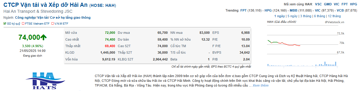 - Rủi ro cần lưu ý: Giá cổ phiếu tăng nhanh trong thời gian ngắn có thể dẫn đến điều chỉnh kỹ thuật. Đồng thời, các yếu tố vĩ mô như chiến tranh thương mại vẫn là rủi ro tiềm ẩn với ngành vận tải biển.