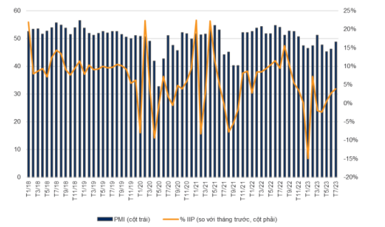 PMI T7/23 đạt 48,7 và chỉ số IIP tiếp tục đà tăng