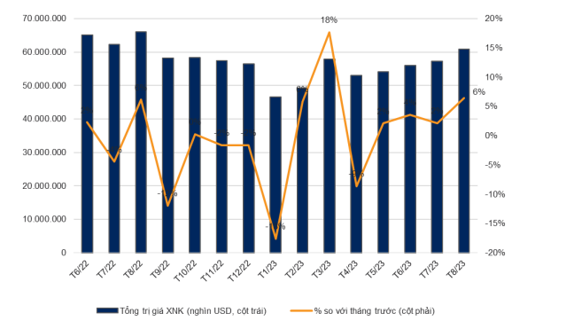 Giá trị XNK Việt Nam hồi phục trở lại sau khi tạo đáy vào đầu năm 2023