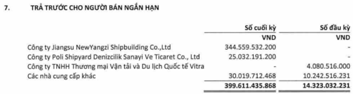 - Doanh nghiệp sở hữu cơ cấu tài chính rất tốt để đảm bảo các hoạt động đầu tư mới. Trong kỳ, công ty đã ký hợp đồng với Jiangsu New Yangzi shipbuilding để mở rộng đội tàu khai thác. Công ty cũng chủ động mở thêm một số tuyến dịch vụ mới tới thị trường nhập khẩu lớn của nước ta.