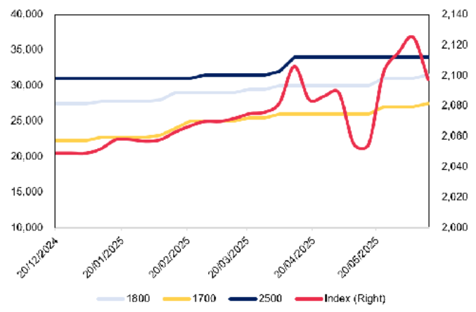 Ảnh 3: Giá cước tàu cho thuê theo kích cỡ, số liệu đến hết Q2/25.