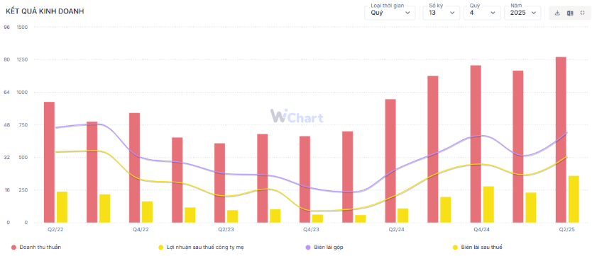 Trong Q2/25, kết quả kinh doanh của HAH vẫn duy trì đà tăng trưởng tích cực. Trong kỳ, doanh thu đạt 1.275 tỷ đồng (+34% yoy). Lợi nhuận ròng sau thuế tăng 223% - đạt mốc 362 tỷ đồng và là con số cao nhất từ khi lên sàn tới nay. (Hình 1)