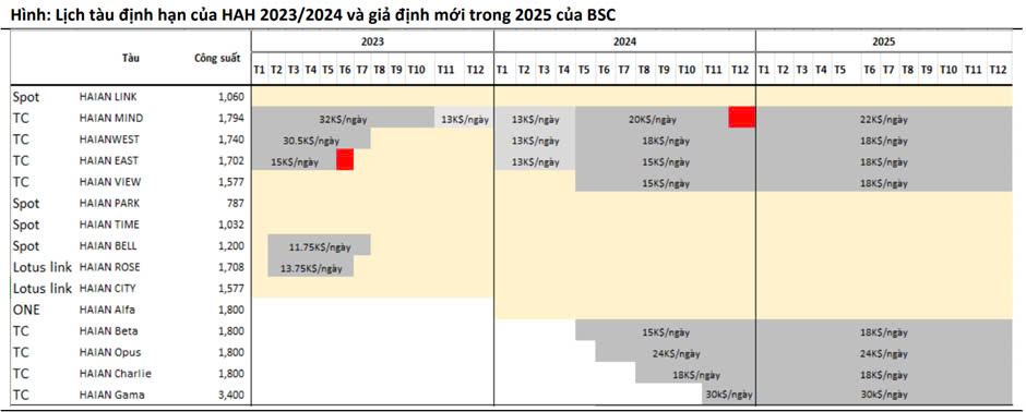 Chưa hết, đối với Tàu Haian Mind, hiện tại HAH đang thực hiện đàm phán tái ký hợp đồng ở mức 22 nghìn USD/ngày cho năm 2025 cao hơn giá thị trường chủ yếu do đây là tàu thuê chạy ở khu vực biển Đỏ.