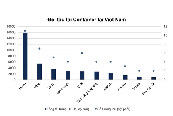 Đội tàu container của Việt Nam chủ yếu là các tàu nhỏ, khó cạnh tranh với thị trường quốc tế. Tính tới thời điểm cuối năm 2023, đội tàu container Việt Nam có 48 con tàu được vận hành bởi 11 hãng tàu, với tổng sức chở đạt gần 44,000 TEUs. Với kích cỡ của các đội tàu hiện tại, các hãng tàu Việt Nam chỉ có thể hoạt động trên thị trường nội địa và nội Á, không thể cạnh tranh với các hãng tàu quốc tế quy mô lớn và mạng lưới phân bố ổn định. Do đó, các doanh nghiệp trong nước phải tập trung vào thị trường vận tải thủy nội địa - một phân khúc mà các hãng tàu quốc tế không thể tham gia (theo bộ luật hàng hải Việt Nam năm 2015)