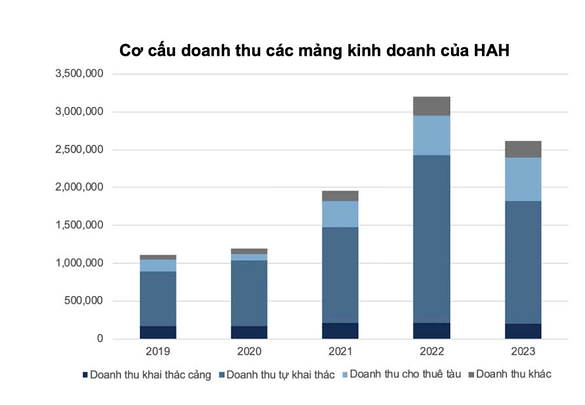 HAH có 2 mảng hoạt động chính là khai thác cảng và khai thác tàu (tự khai thác và cho thuê) với doanh thu chủ yếu đến từ mảng khai thác tàu (hơn 80%). Các mảng doanh thu khác chủ yếu là để hoàn thiện chuỗi giá trị logistic của HAH.
