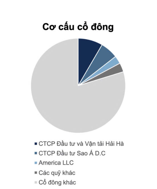 Cơ cấu cổ đông phân mảnh với cổ đông lớn nhất và cũng là một trong những cổ đông sáng lập là CTCP Đầu tư và Vận tải Hải Hà nắm giữ 16.83% cổ phần