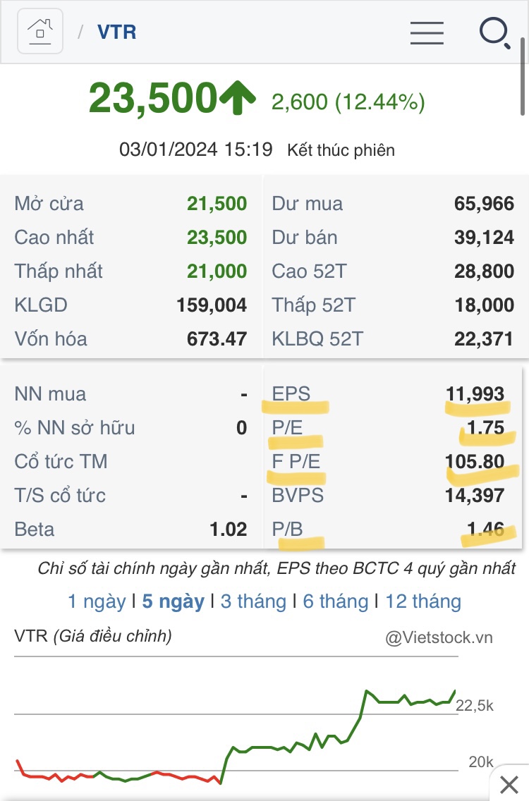 VTR ngôi sao đang lên. riêng chỉ số cơ bản FA quá tốt nhìn EPS P/E ntn thì chỉ cần bung volume nữa là ngon và 2 phiên hôm qua hôm nay volume đã bung