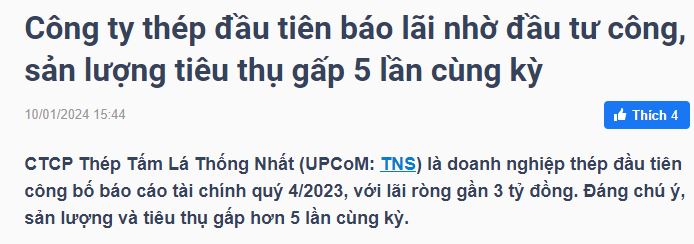 thép có DN đầu tiên ra bctc, quý 1/2024 thép khá sáng sủa