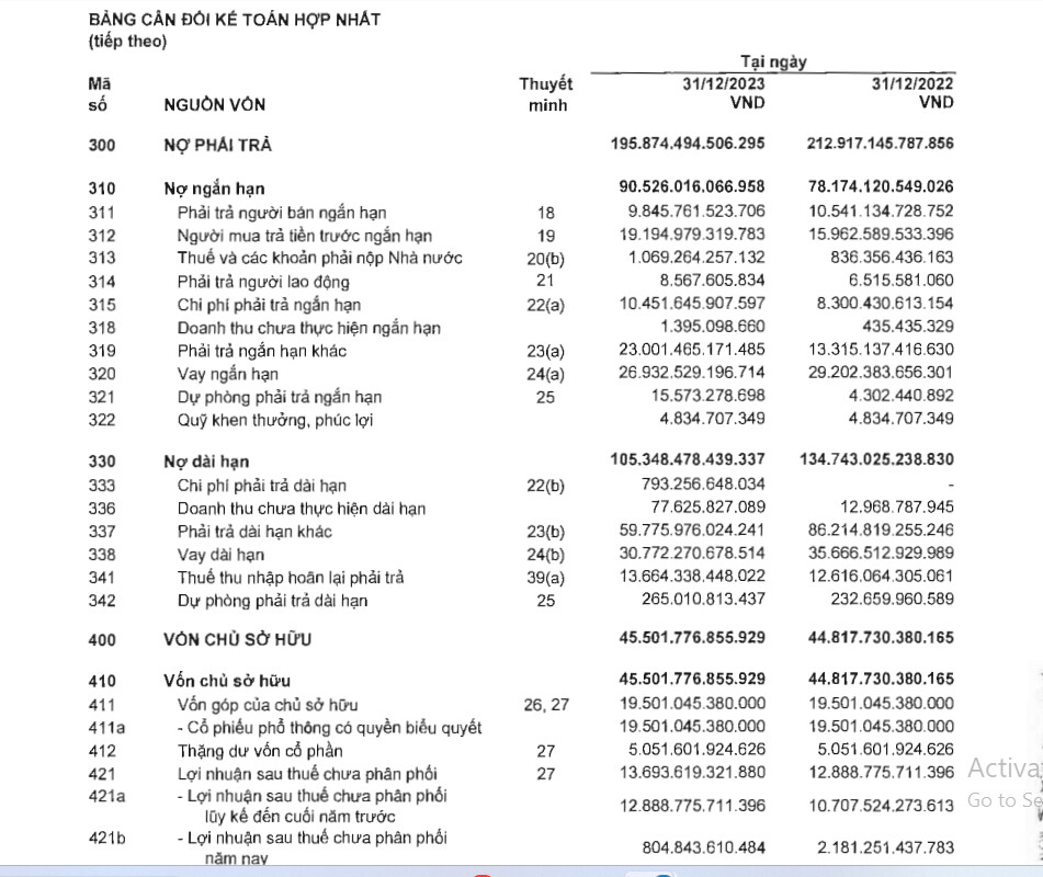 Nợ vay ngắn hạn 26k tỷ giảm 3k tỷ dài hạn 30kty giảm 5k tỷ